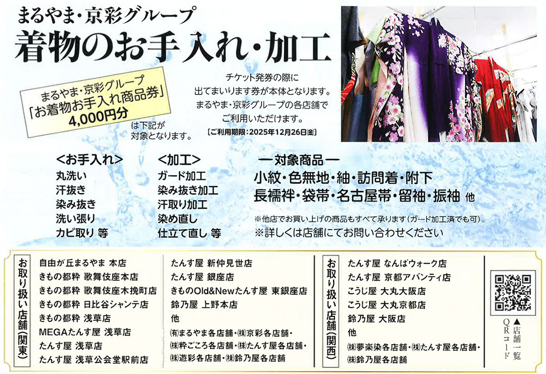 ご参加の方には 着物のお手入れ4,000円分割引券 をプレゼント!