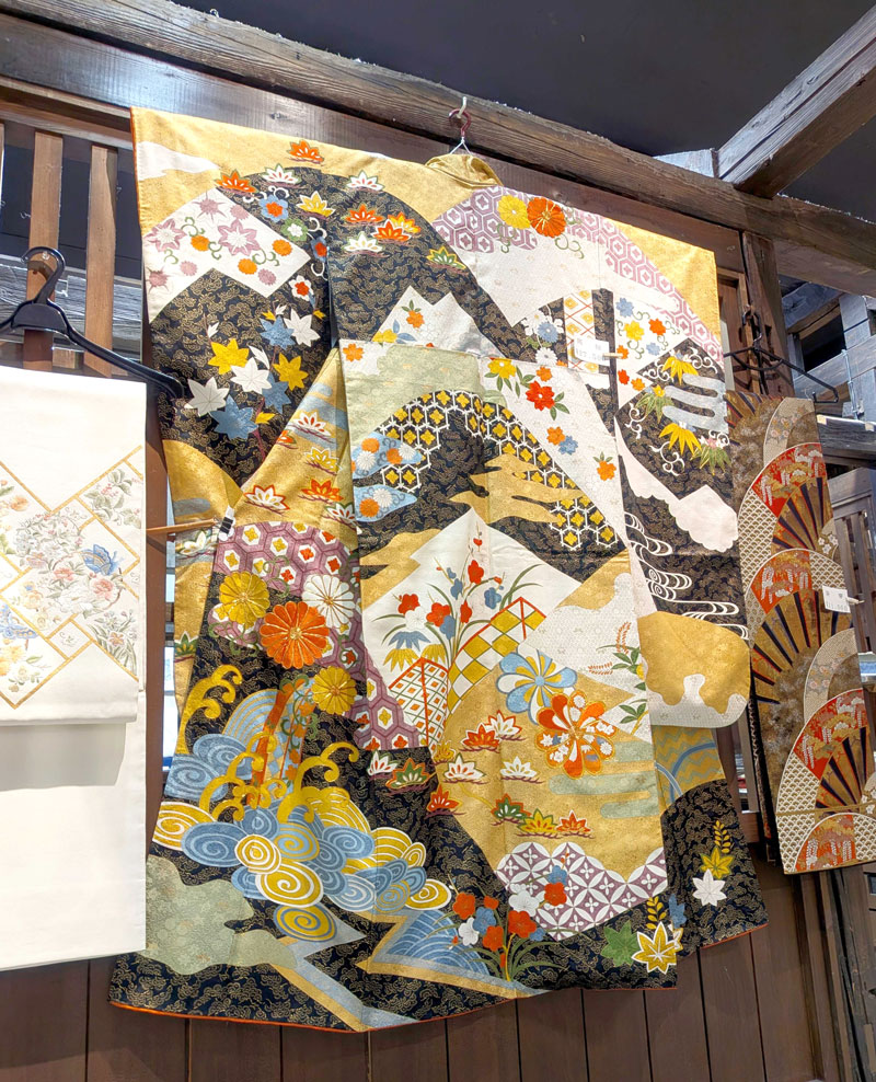 そんなレトロな街並みの一角で一期一会のリユースお着物や帯などをご紹介しております。