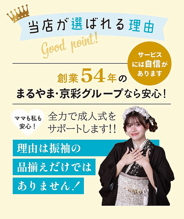 振袖のご購入から振袖レンタル、帯や小物も常に充実した内容で取り揃えてあるので、