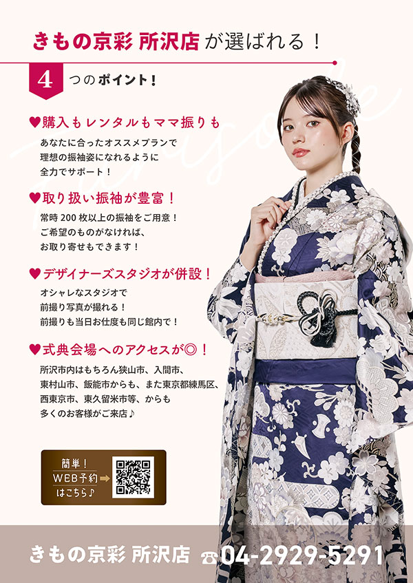 きもの京彩 所沢店は、所沢市内はもちろん狭山市、入間市、東村山市、飯能市からも、また東京都練馬区、西東京市、東久留米市等、幅広い地域のお客さまからご愛顧頂いております。