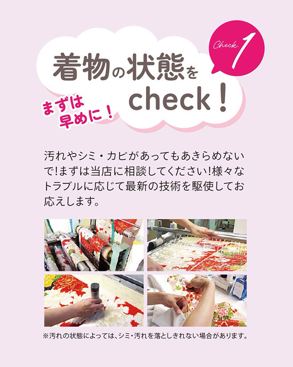 きものの『お手入れ』着物や帯、長襦袢の丸洗いをはじめ、洗張り、染替え、仕立て替え、リメイクなども専門知識のあるスタッフを揃え皆様のご来店をお待ちしております。
