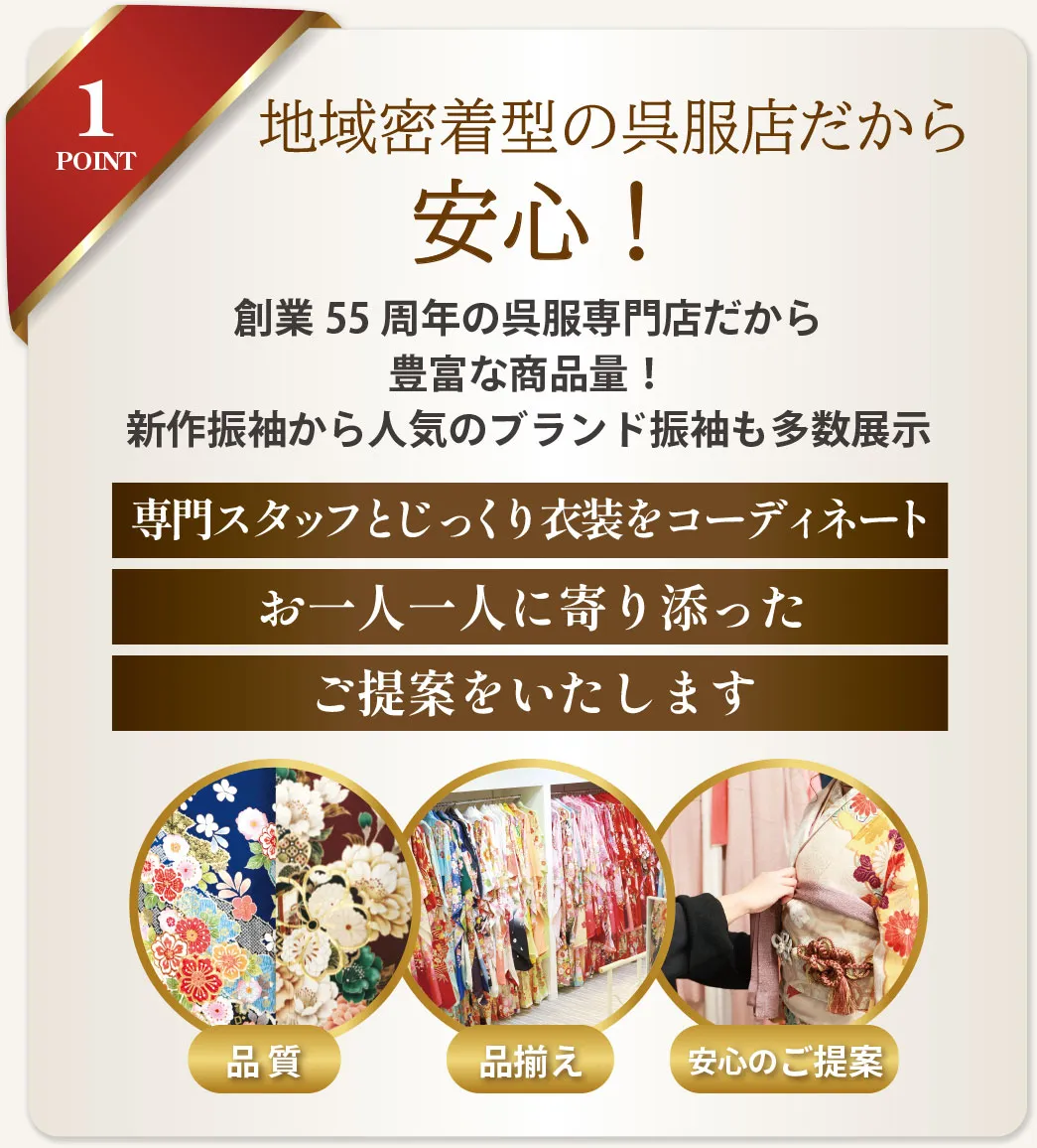 「振袖にも力を入れており、市原市そして近隣の千葉市・木更津市・茂原市・袖ヶ浦市などからも多くのお客様からアクセスしやすい地域となっております。是非一度お立ち寄りいただければ幸いです。