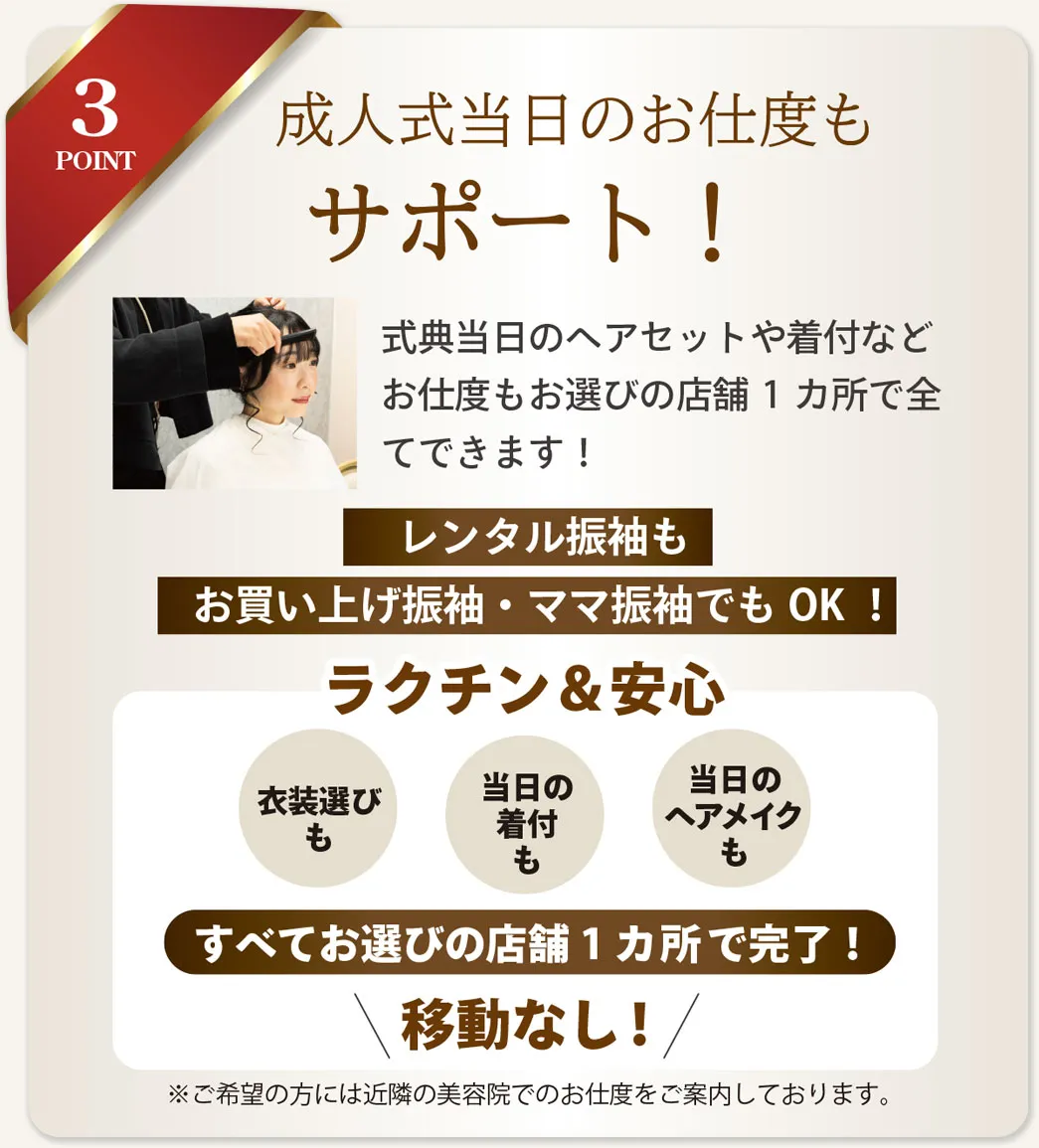 はたちのつどい(成人式)のお支度会場は、ご成約頂いた店舗!