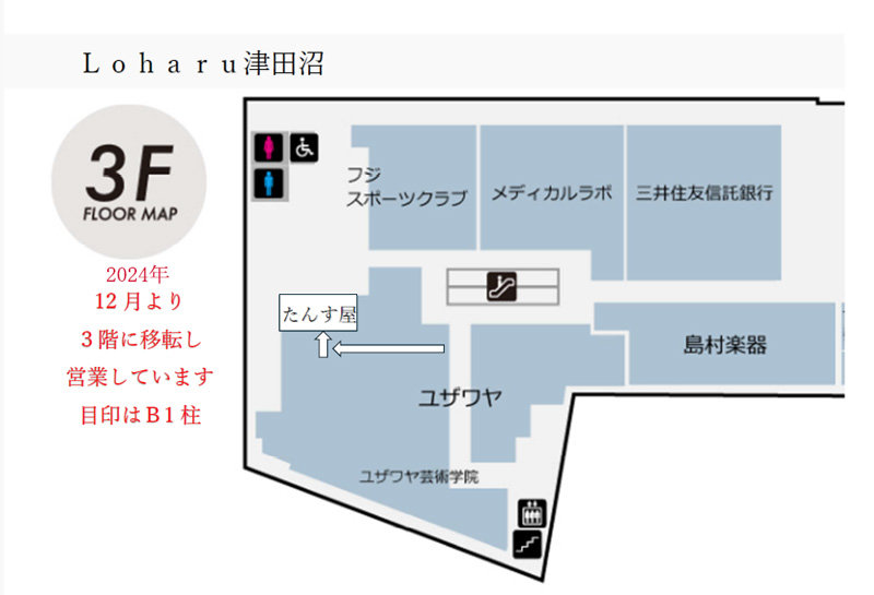 | 住所 | 〒275-0026 千葉県習志野市谷津7-7-1 ロハル津田沼3F ユザワヤ店内 |
